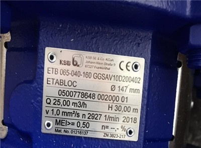 KSB水泵ETB 065-040-160 GGSAV10D200402